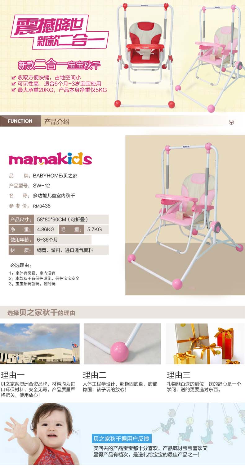 贝之家 多功能 宝宝秋千 婴儿秋千 儿童秋千